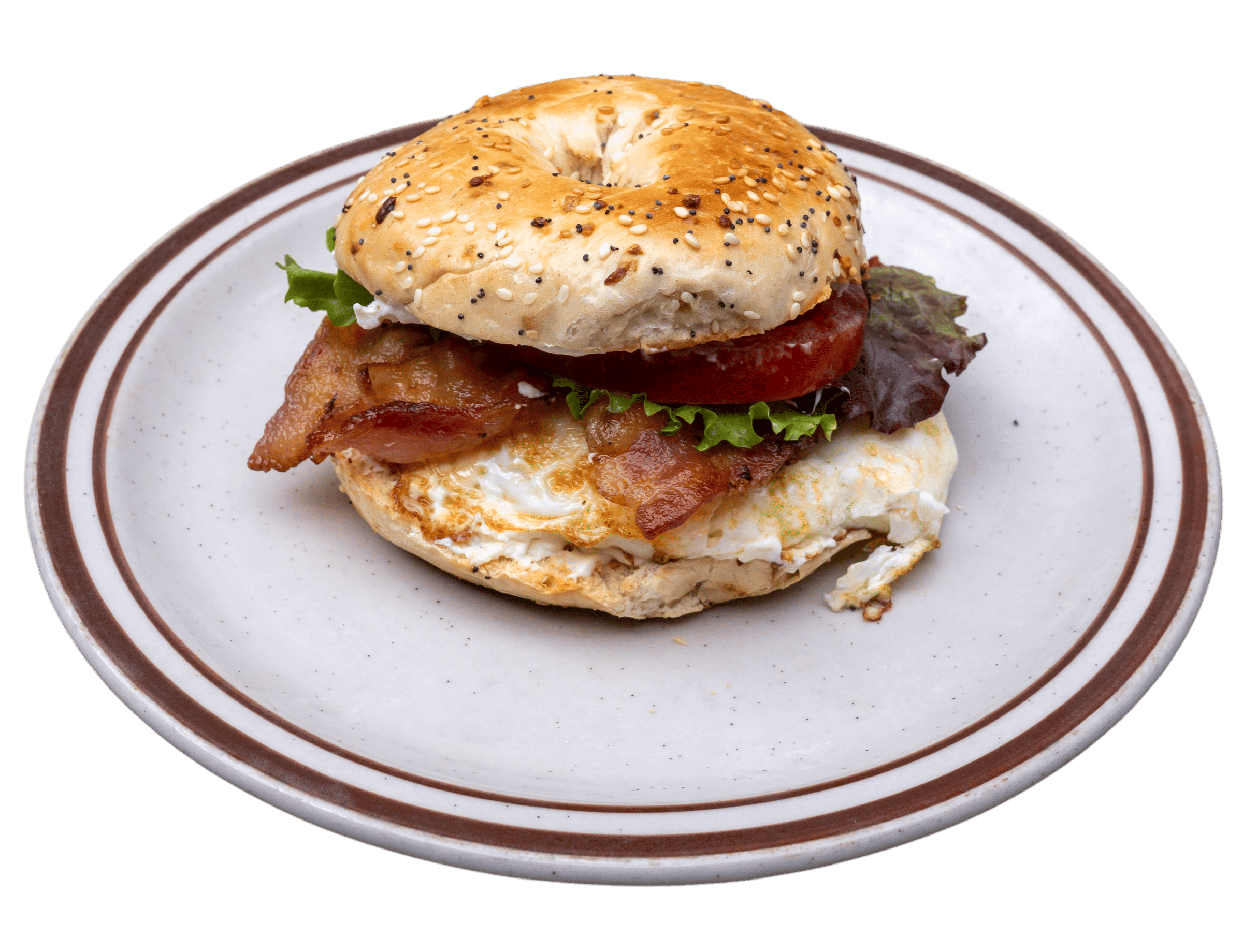 bacon, fried egg, spinach, tomato, cream cheese