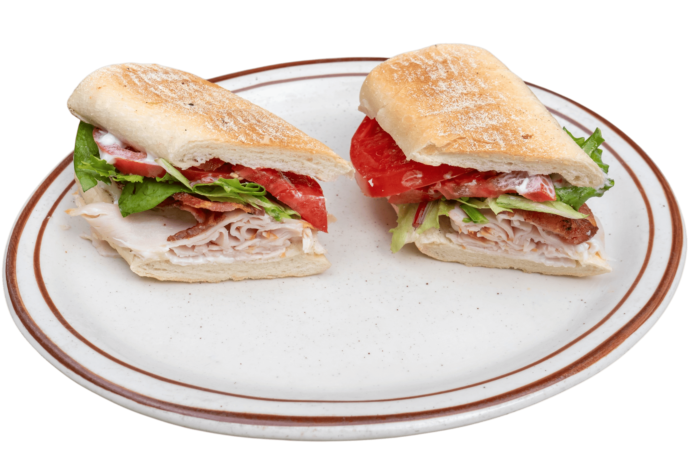 Turkey, Bacon, Spinach, Tomato, Mayo on Your Choice of Toasted Hoagie Roll or Tortilla