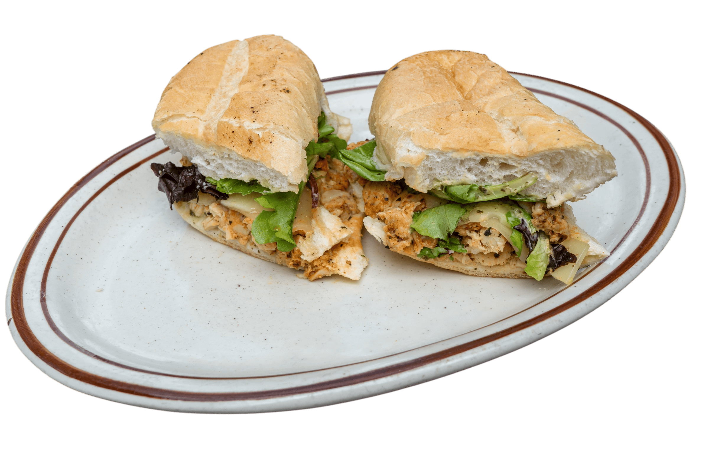 turkey or chicken, swiss, pesto aioli, spring mix, served on a hoagie roll